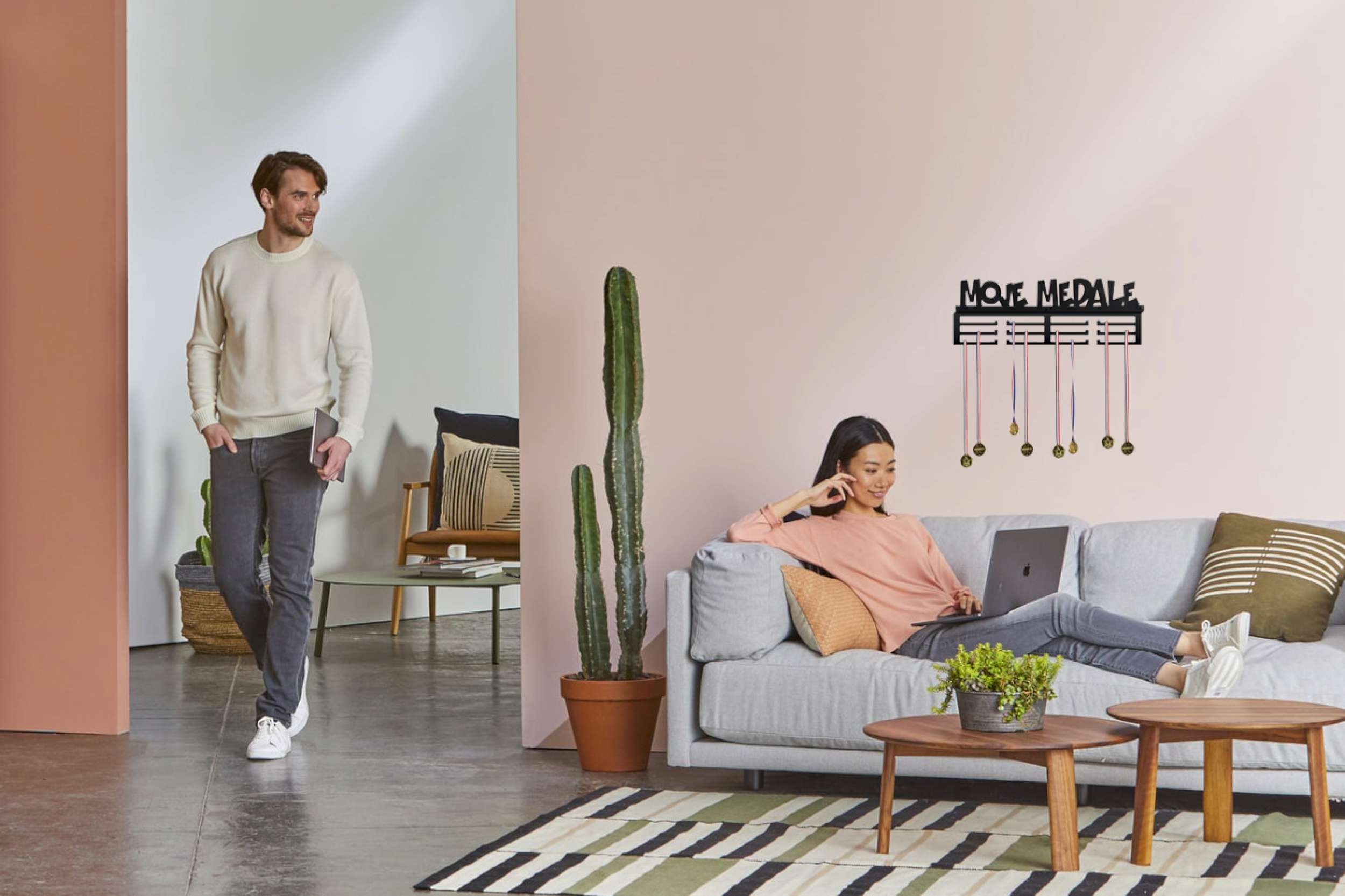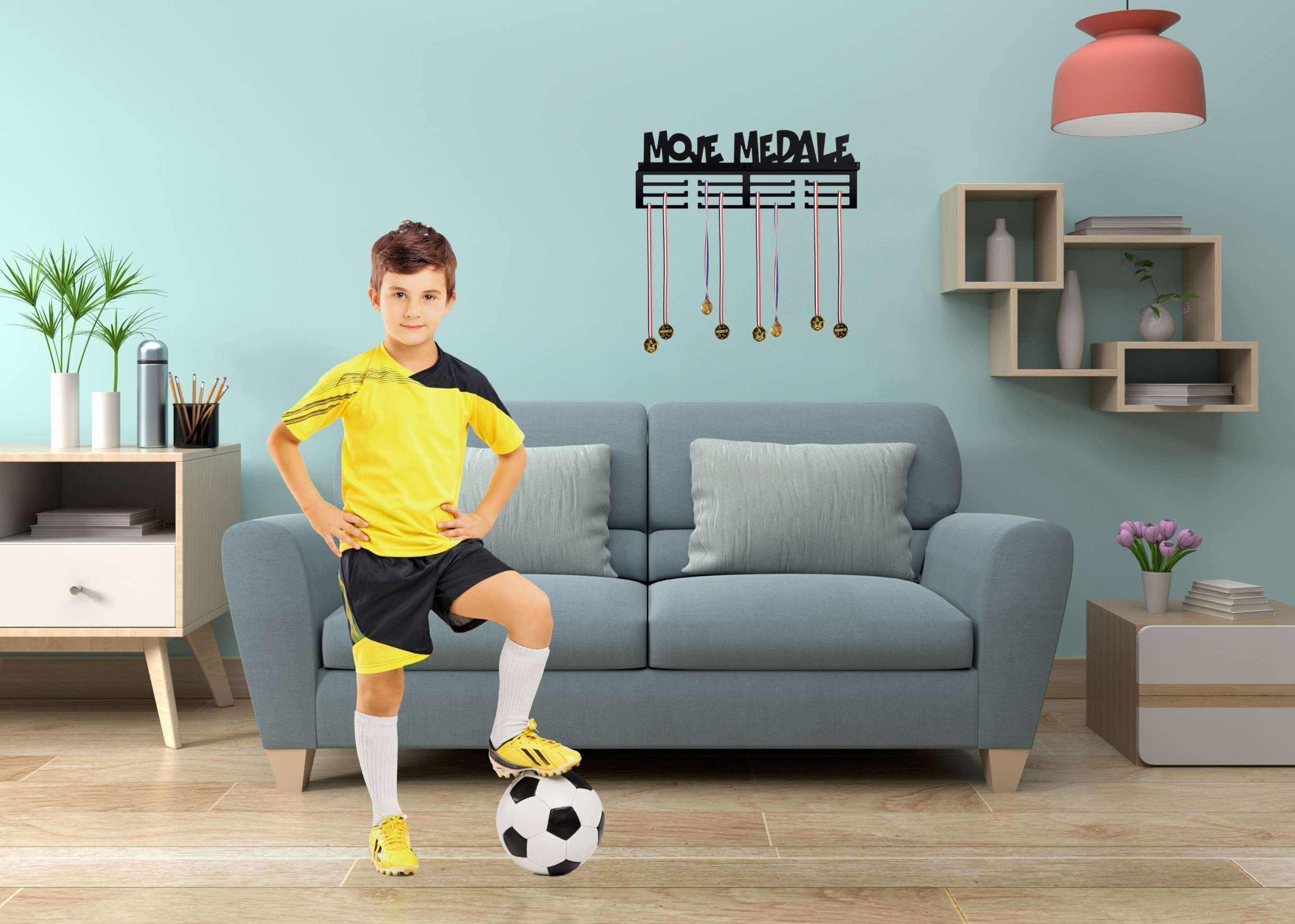 Doskonały pomysł na prezent. Wieszak na medale to najmodniejszy gadżet do pokoju zarówno dzieci jak i dorosłych! Bardzo estetycznie wykonany, literki wycinane sa bowiem laserowo. Metalową konstrukcję zabezpieczono proszkowo matowym lakierem w czarnym kolorze. Dwanaście uchwytów pomieści od sześćdziesięciu do stu medali.