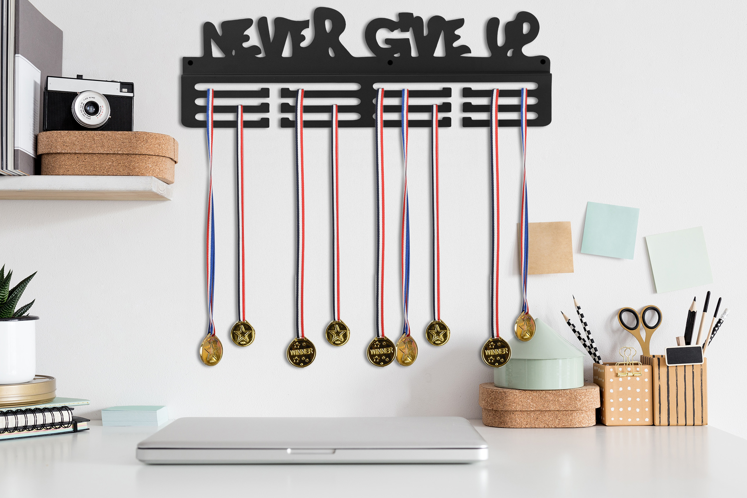 Wieszak na medale to stylowy i praktyczny element dekoracyjny, must have na liście każdego, kto trenuje. Wycięty precyzyjną technologią laserową. Całość została dwustronnie polakierowana, dzięki czemu wieszak jest odporny na zadrapania.