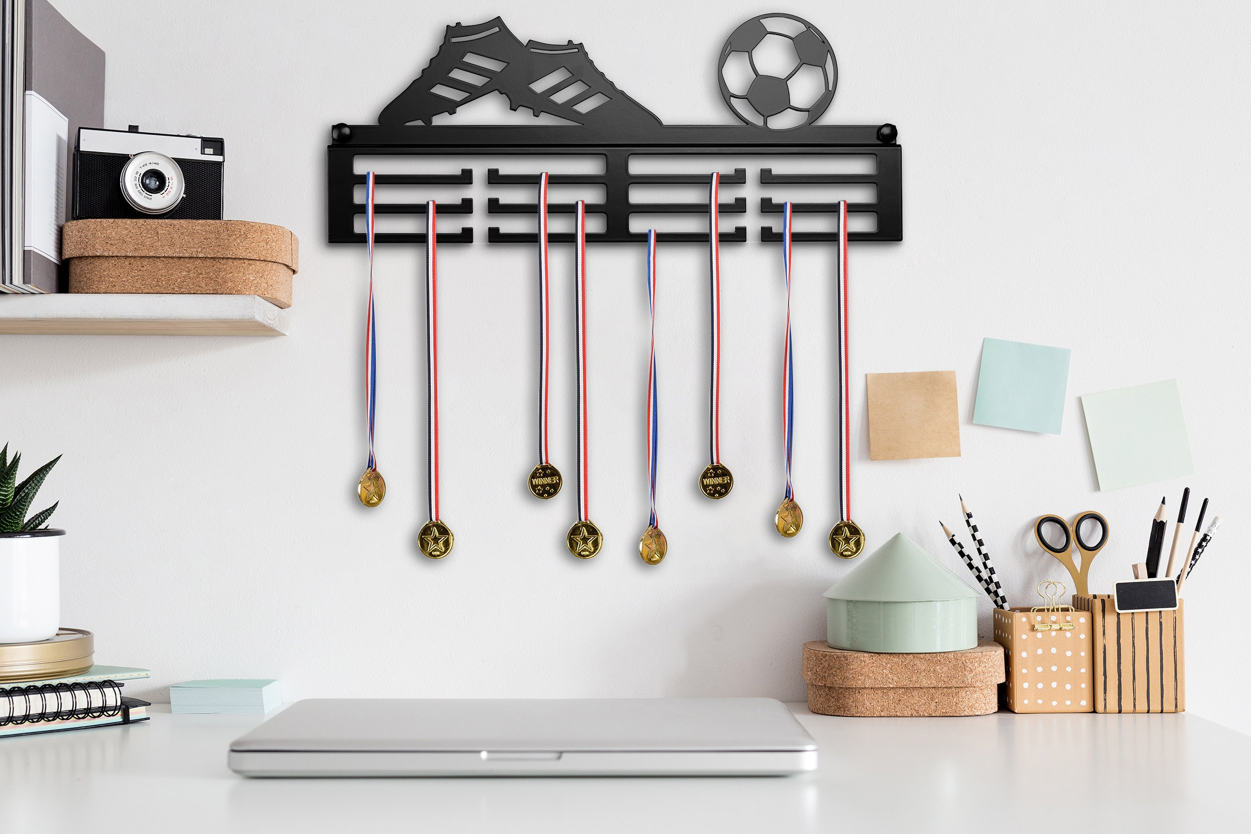 Wieszak na medale to stylowy i praktyczny element dekoracyjny, must have na liście każdego, kto trenuje. Wycięty precyzyjną technologią laserową. Całość została dwustronnie polakierowana, dzięki czemu wieszak jest odporny na zadrapania.