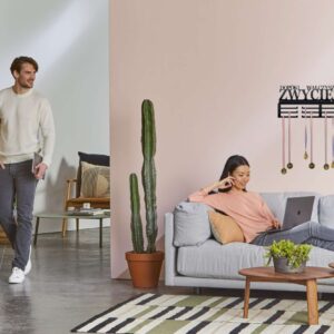 Doskonały pomysł na prezent. Wieszak na medale to najmodniejszy gadżet do pokoju zarówno dzieci jak i dorosłych! Bardzo estetycznie wykonany, literki wycinane sa bowiem laserowo. Metalową konstrukcję zabezpieczono proszkowo matowym lakierem w czarnym kolorze. Dwanaście uchwytów pomieści od sześćdziesięciu do stu medali.