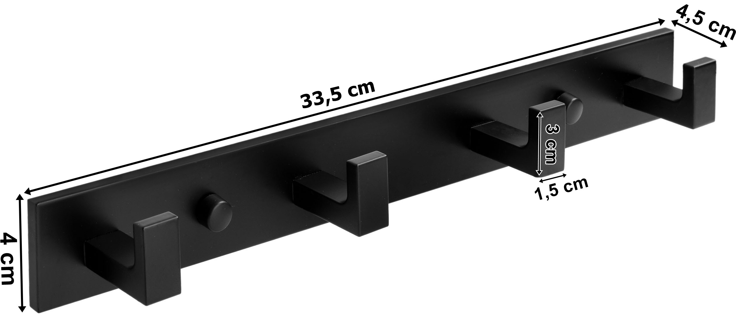 Wieszak Tessera z czterema haczykami został wykonany z aluminium najwyższej jakości, które jest nierdzewne, wodoodporne i pomalowane proszkowo na czarny matowy kolor z zachowaniem dbałości o najmniejsze detale. Czarny kolor wieszaka sprawia, że doskonale sprawdza się w każdym pomieszczeniu np. w łazience, przedpokoju lub kuchni. Idealnie pasuje do stylu loftowego.