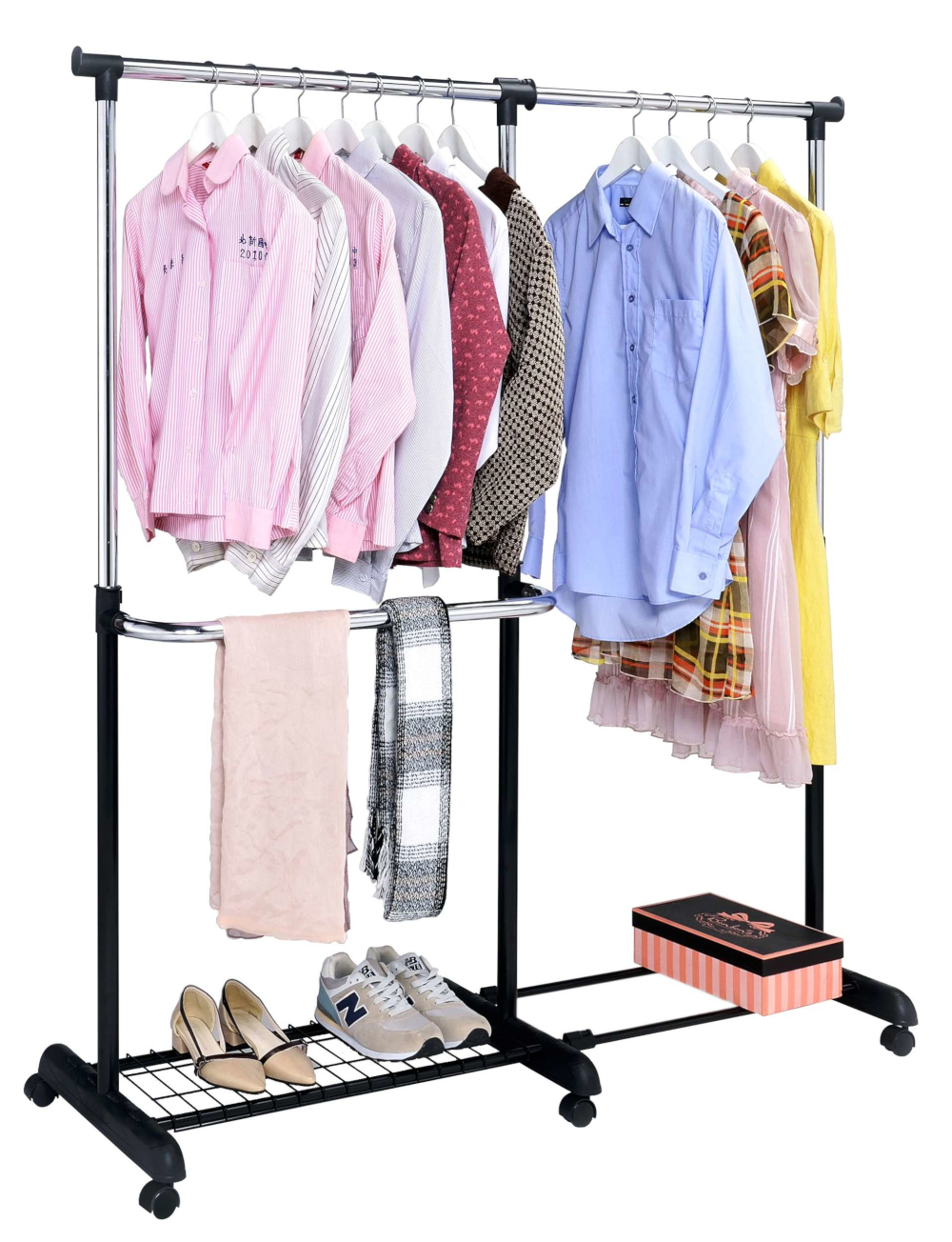 Wieszak regulowany stojący na kółkach Rufo czarny