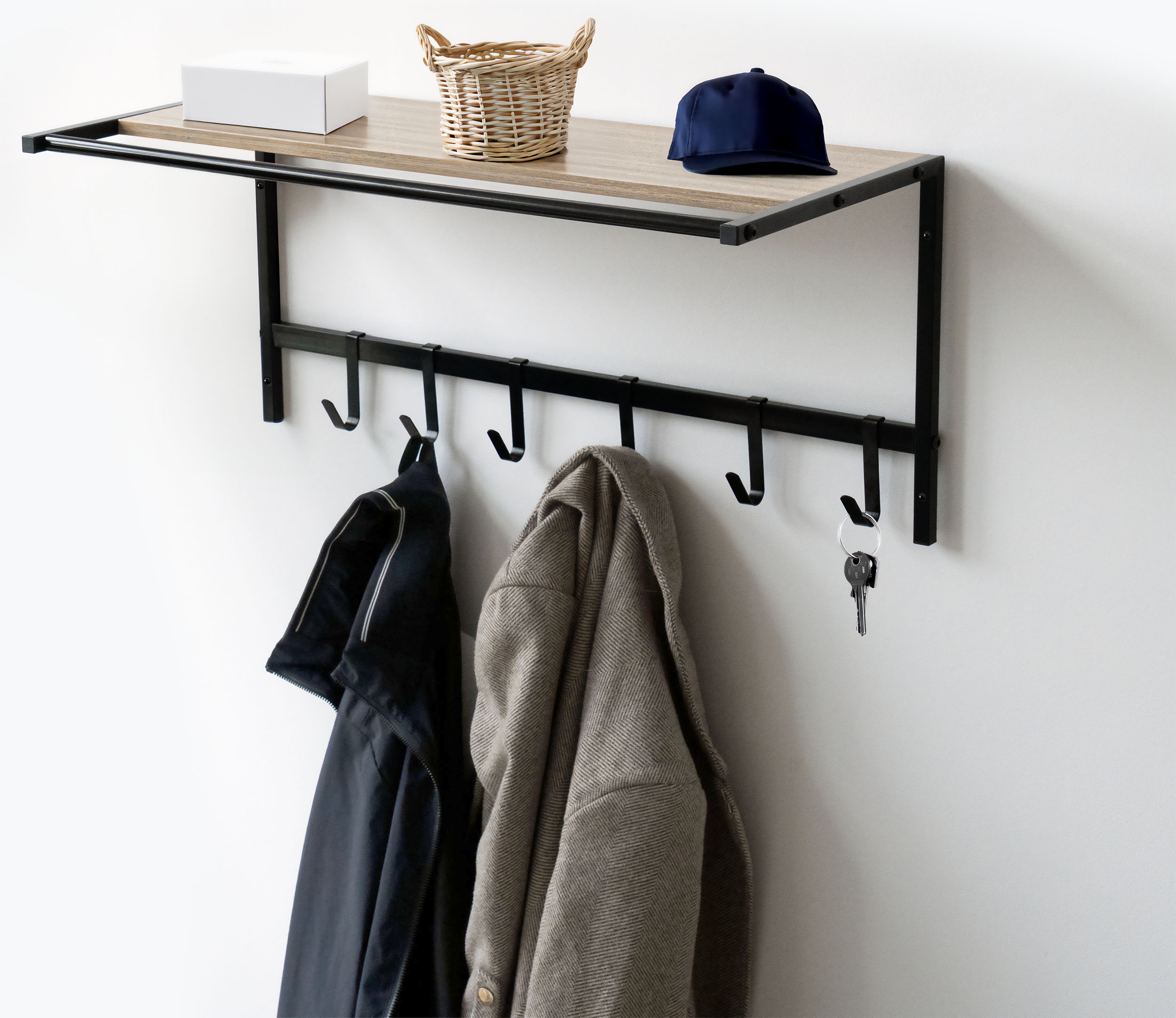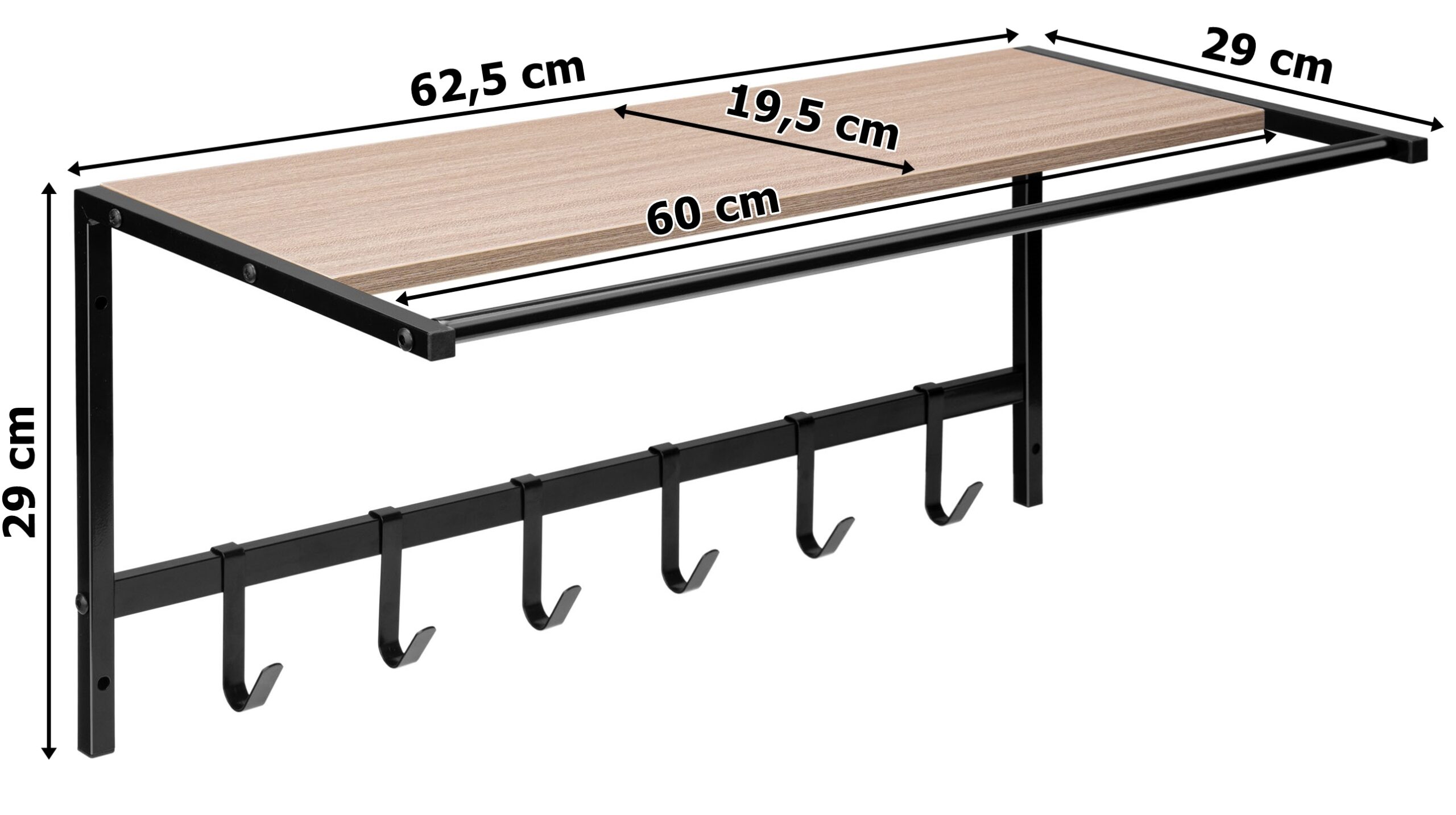 Wieszak ścienny z półką jasny buk AZUL czarny