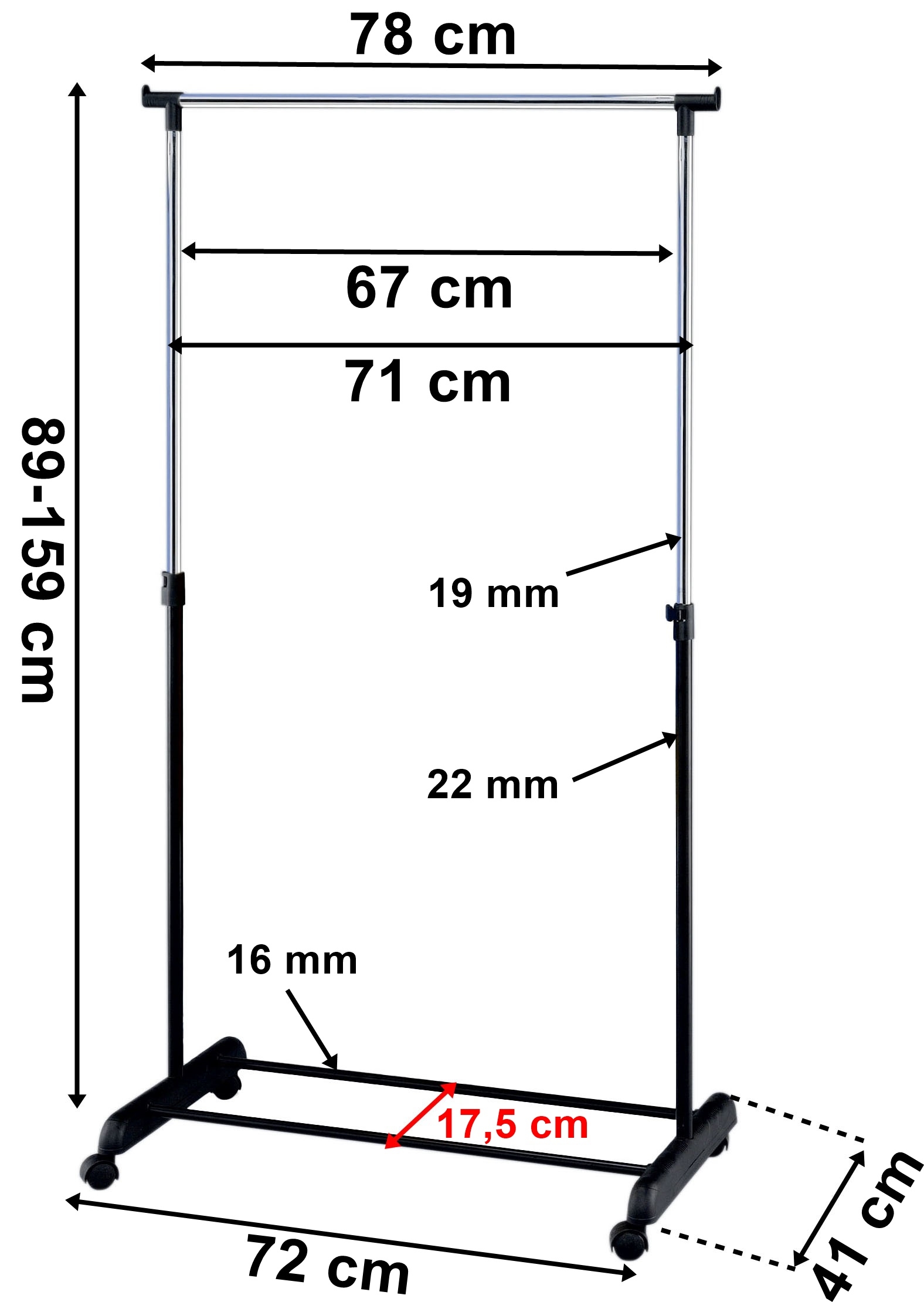 Wieszak stojący na kółkach na ubrania Ida pojedynczy