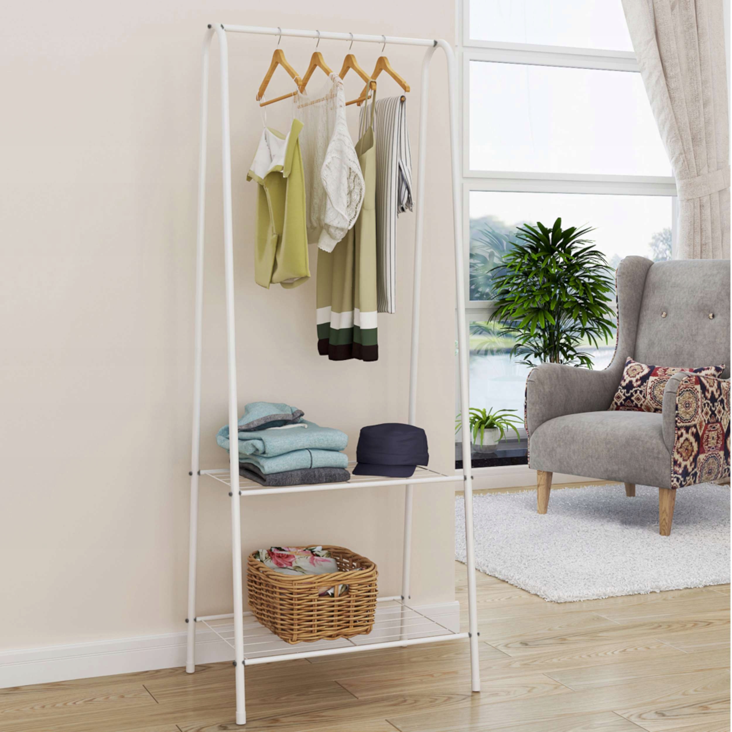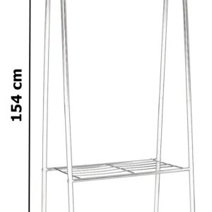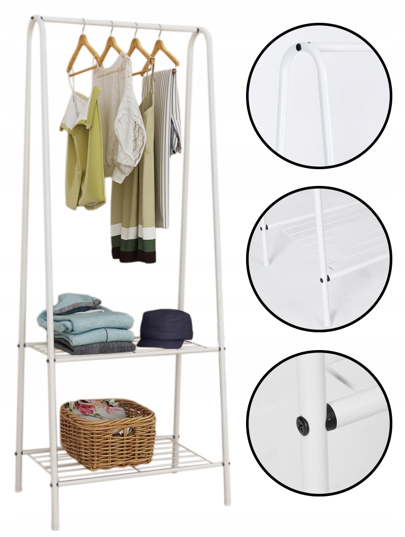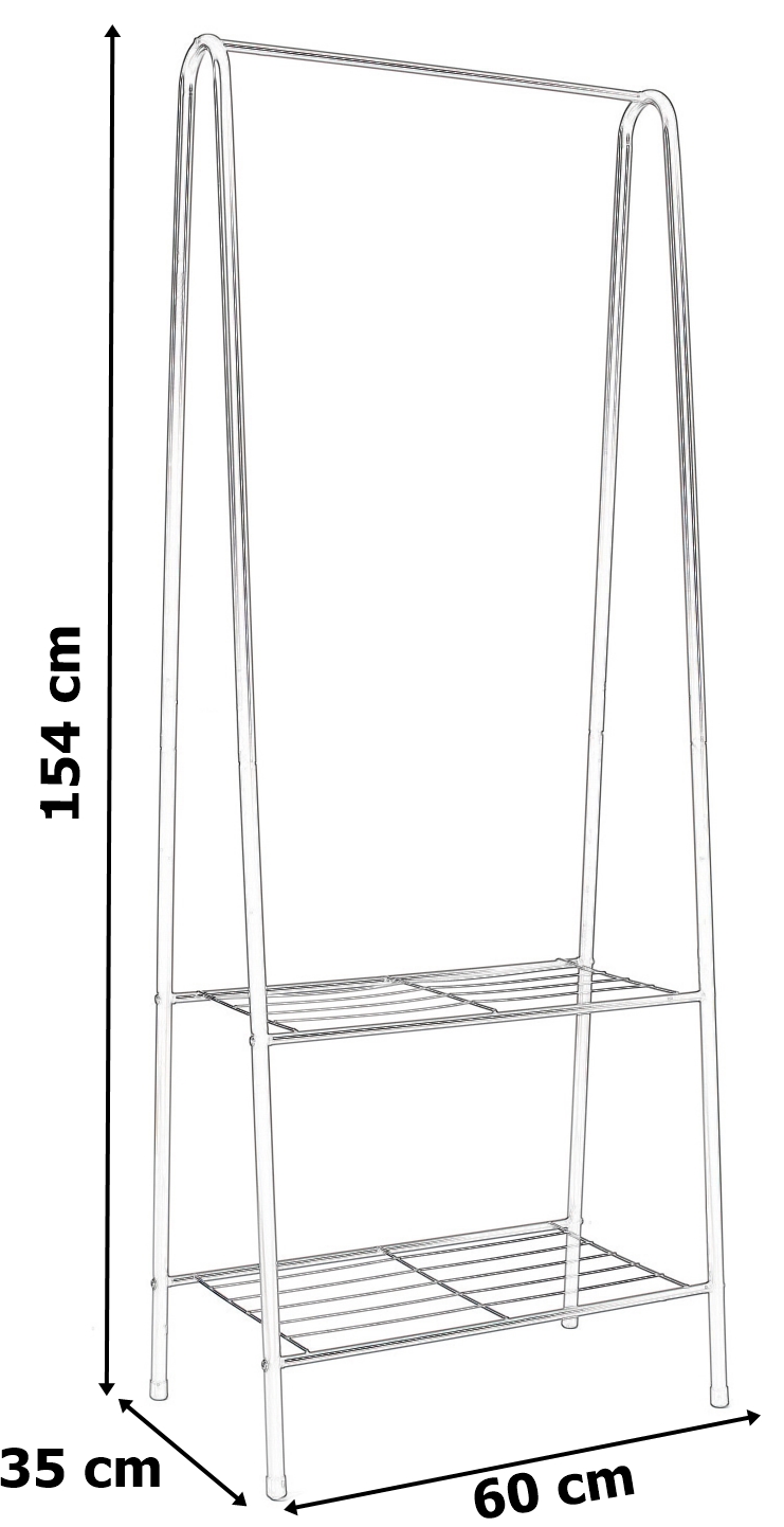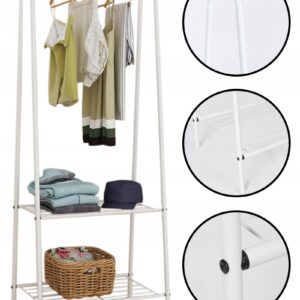 Jego przeznaczenie zależy od Ciebie. Wieszak wyposażony w górny drążek oraz dwie półki w dolnej części.