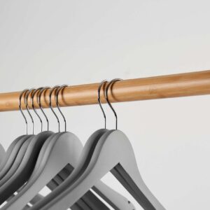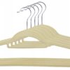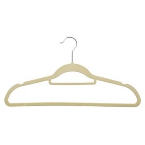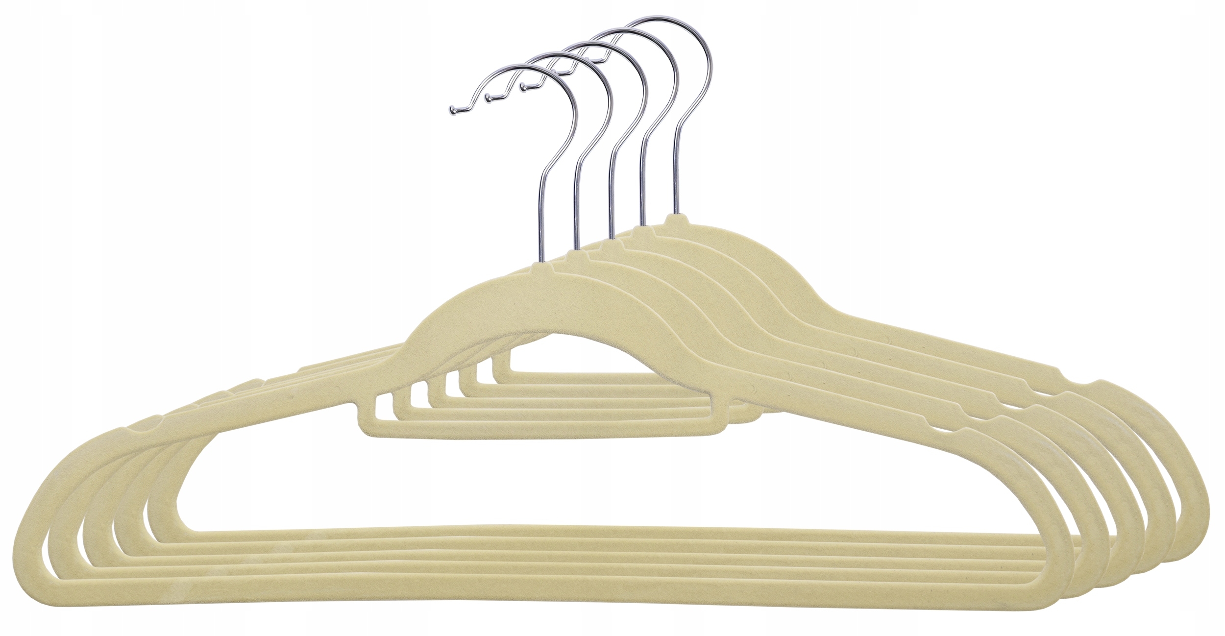Komplet wieszaków aksamitnych. Flokowana powierzchnia czyni je bardzo praktycznymi, zapobiega bowiem zsuwaniu się ubrań. Wieszaki Maxi są odpowiednio profilowane, co pomaga uniknąć zagnieceń na odzieży.