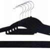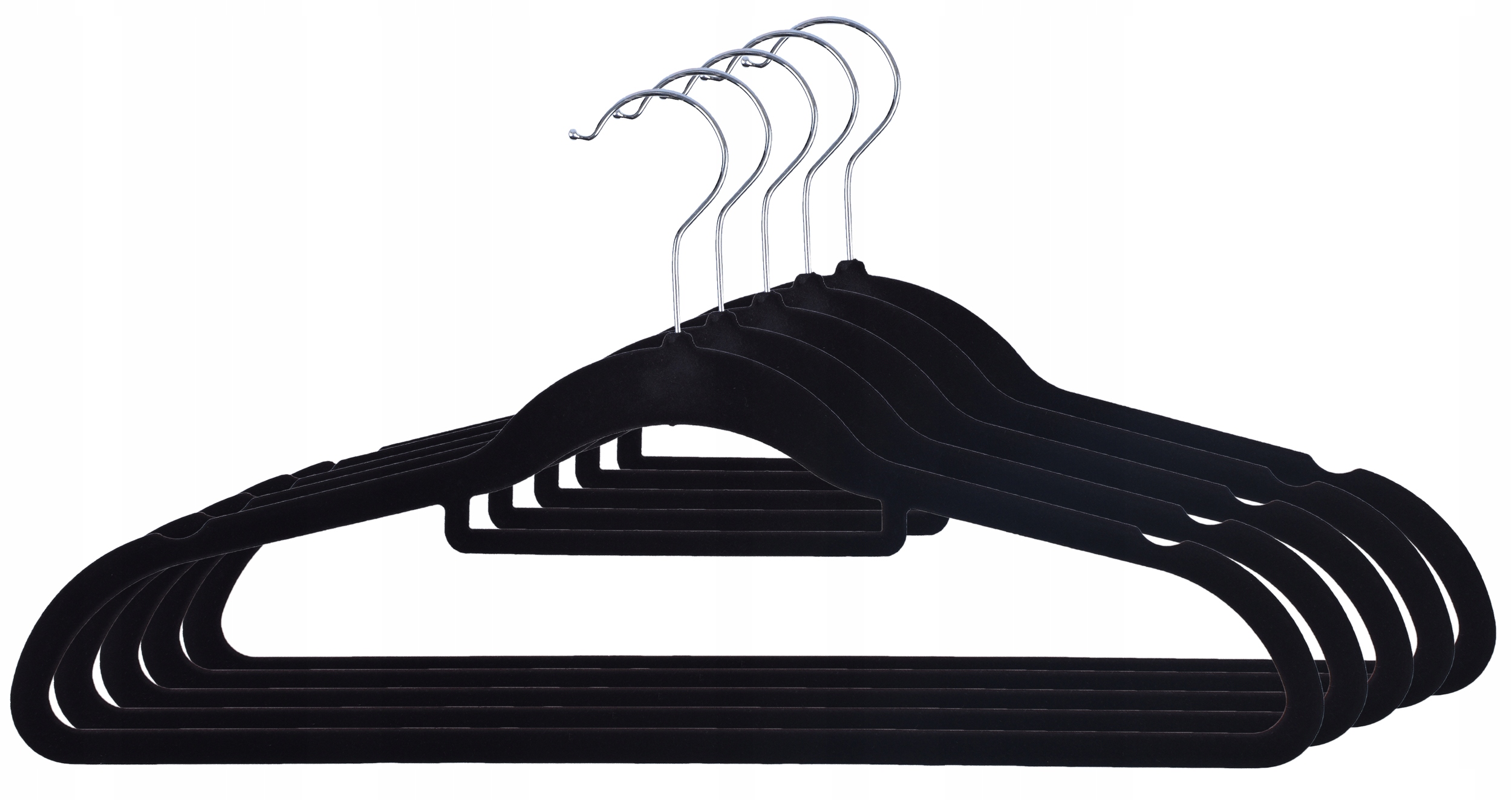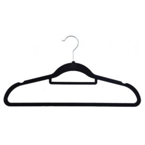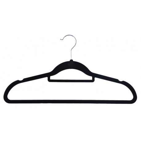 Komplet wieszaków aksamitnych. Flokowana powierzchnia czyni je bardzo praktycznymi, zapobiega bowiem zsuwaniu się ubrań. Wieszaki Maxi są odpowiednio profilowane, co pomaga uniknąć zagnieceń na odzieży.