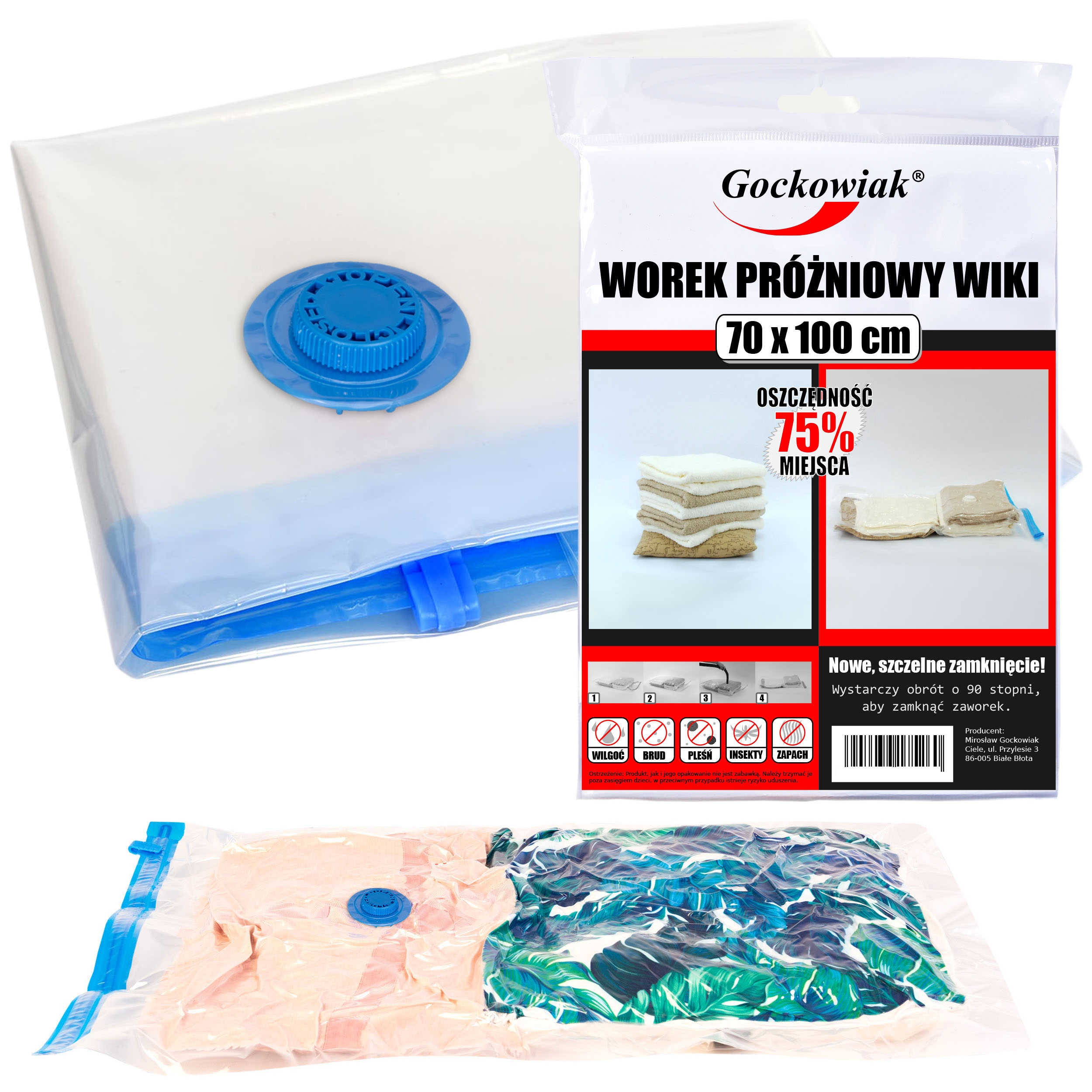 Worek próżniowy na ubrania 70 x 100 cm.