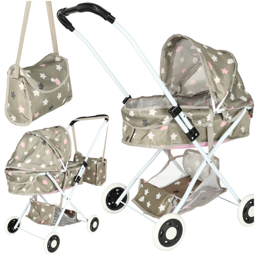 Wózek dla lalek gondola głęboki + torba gwiazdki