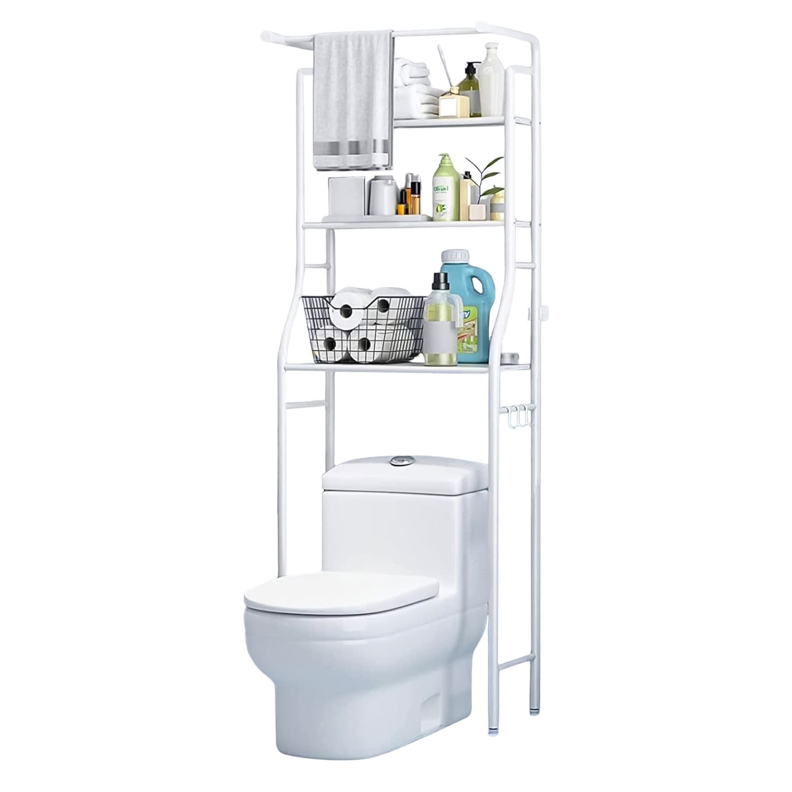 - Jedną z zalet regału są 4 wieszaki, które stanowią idealne miejsce do zawieszenia ręczników czy też innych akcesoriów łazienkowych.