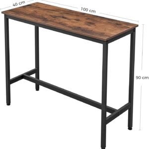 Stolik barowy wykonany w stylu rustykalnym, czyli odpowiednio stylizowanym na wiekowe. Odpowiednie wymiary stołu zapewniają wystarczająco dużo miejsca na przygotowanie czy zjedzenie śniadania. Przy stole bez problemu zmieszczą się 4 osoby.