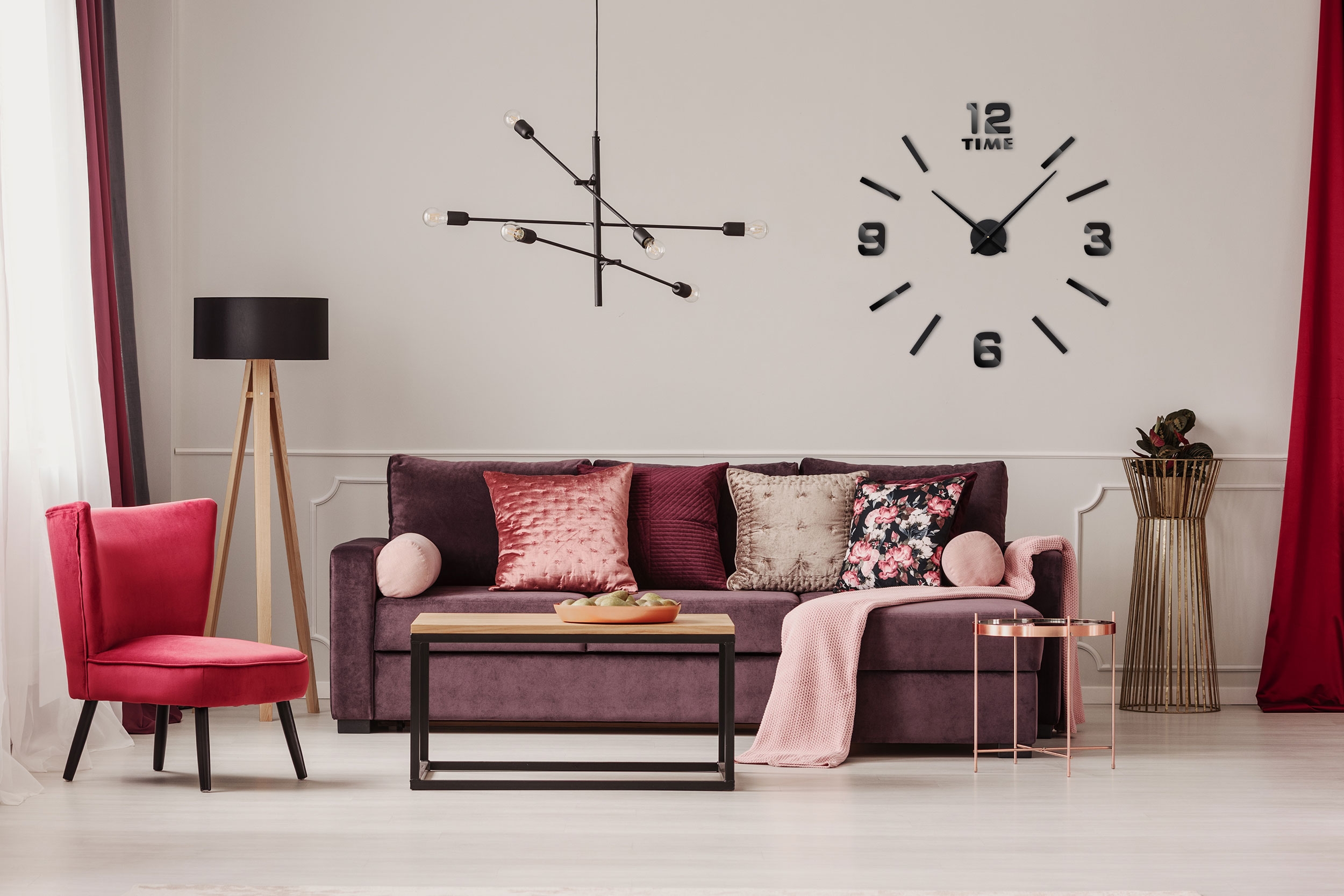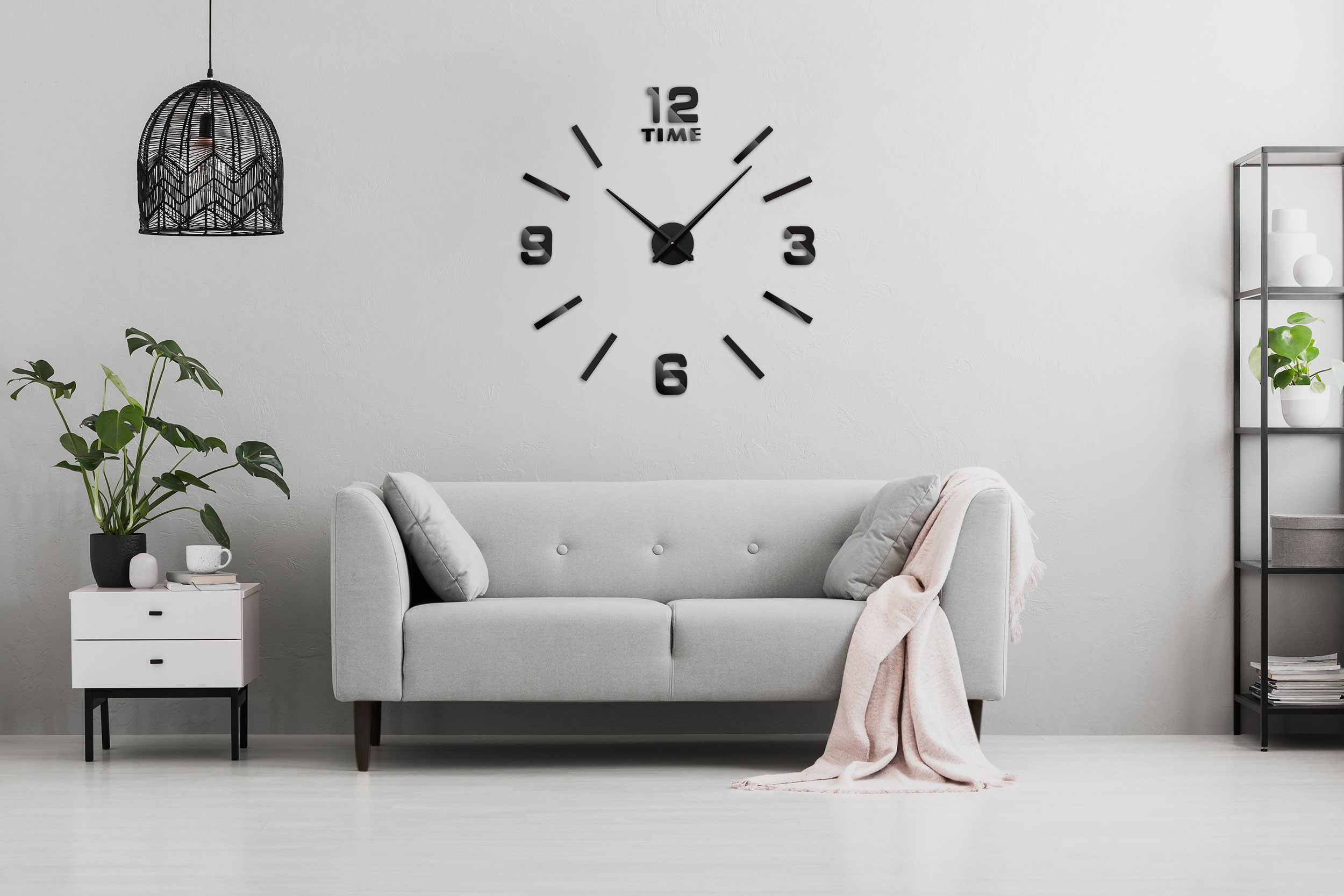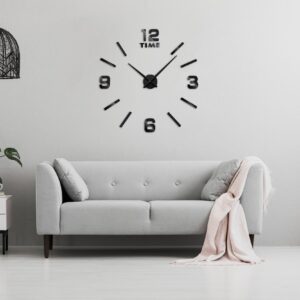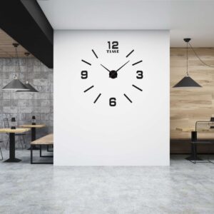 Nowoczesny zegar typu DIY – zrób to sam. Idealny dodatek do każdego salonu lub biura. Wielkość zegara zależy od Ciebie! Możesz mu nadać dowolną średnicę! Sugerujemy rozmiar 80-100 cm, wówczas zegar prezentuje się najlepiej. Zegar do przyklejenia na ścianie lub do innych gładkich powierzchni.