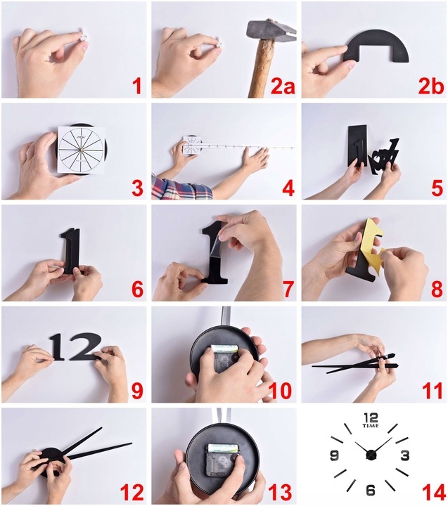 Zegar ścienny DIY NEPRI 65 – 130 cm – czarny 3D
