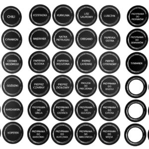 ✅Naklejki z nazwami przypraw: Ułatwiają szybkie odnalezienie potrzebnej przyprawy, co znacząco poprawia komfort użytkowania.