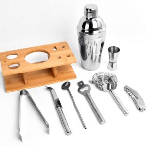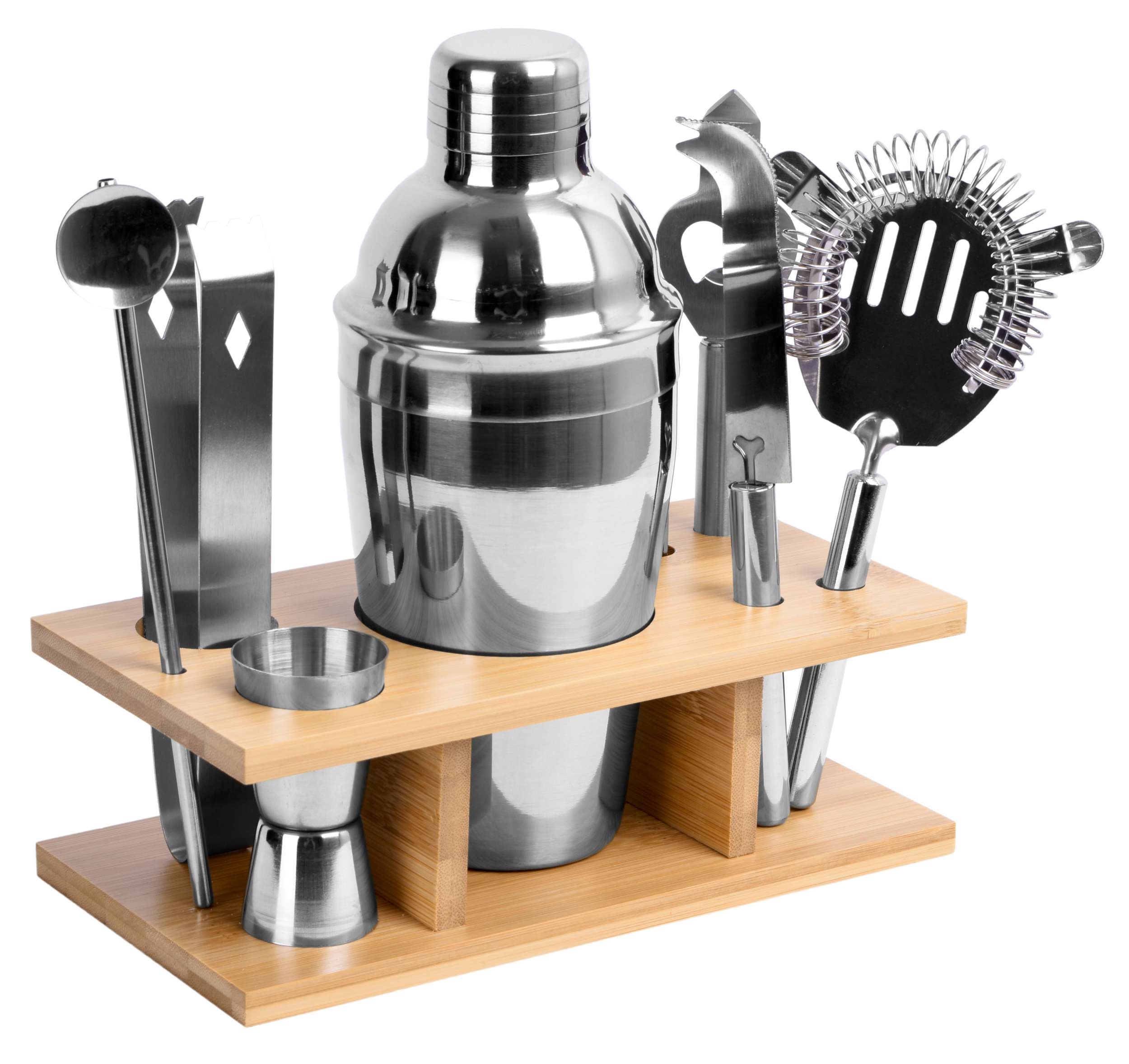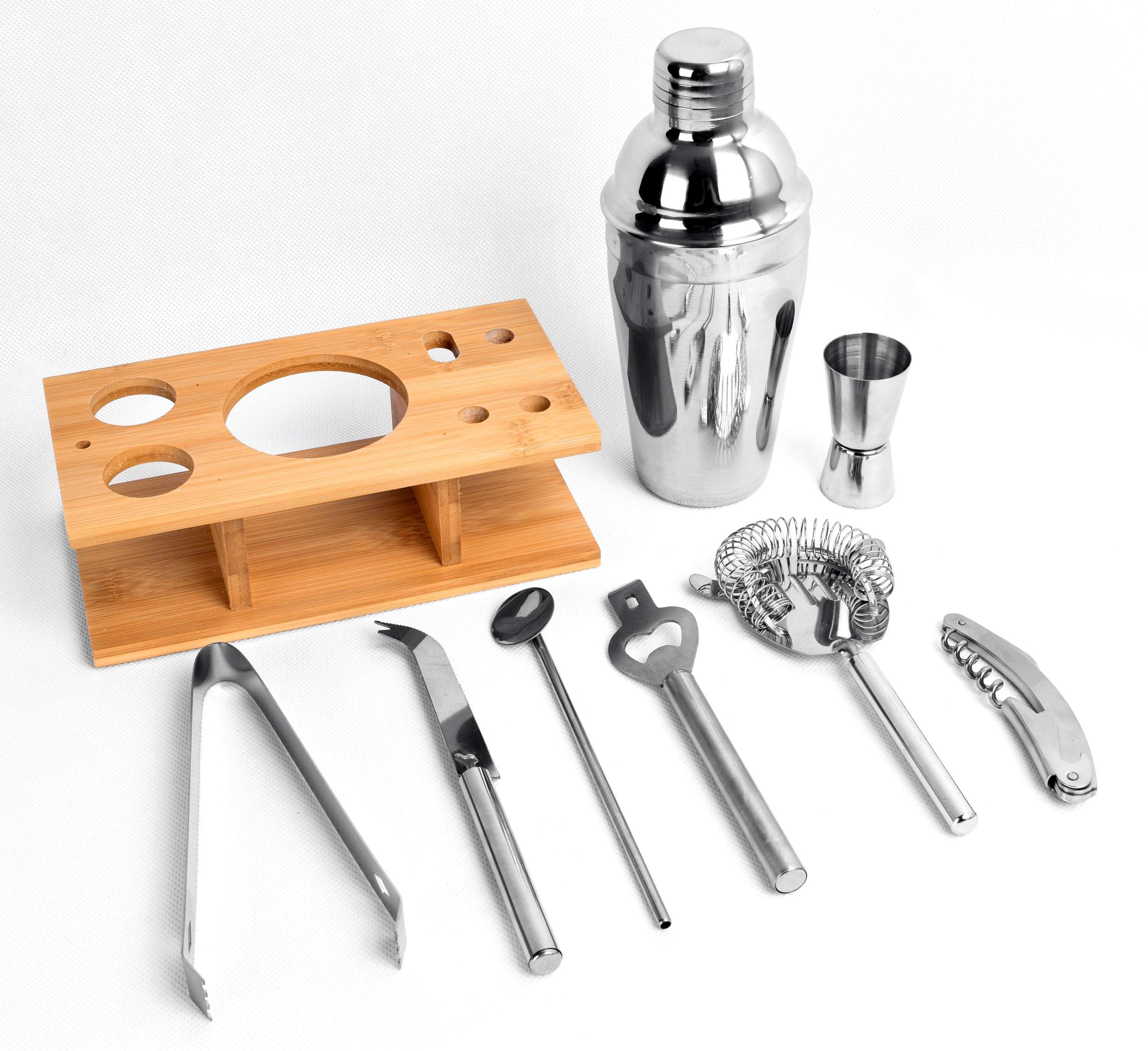 Zestaw barmański składa się z dziewięciu elementów, wykonanych ze stali szlachetnej. Pozwala to zachować autentyczny smak uzytych do drinka składników.