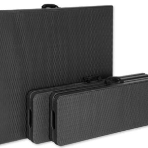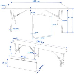 Składana ławka cateringowa jest bardzo praktyczna oraz wytrzymała. Konstrukcja wykonana ze stali malowanej proszkowo. Siedzisko wykonane z polietylenu HDPE. Wzorowane na rattan. Odporna na promienie słoneczne. Dzięki unikalnemu projektowi całość konstrukcji chowa się w siedzisko ławki, zajmując mało miejsca i tworząc ergonomiczną walizkę, łatwą do przenoszenia.