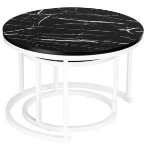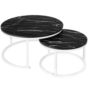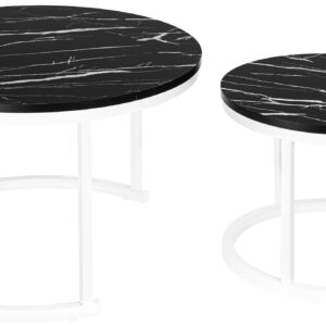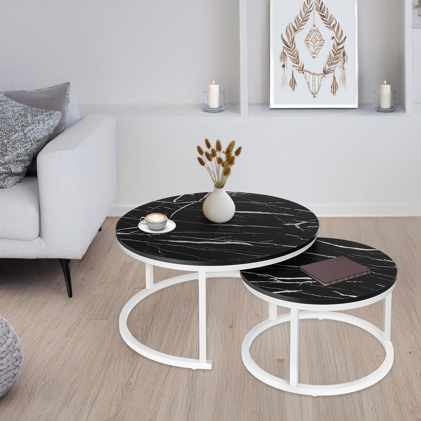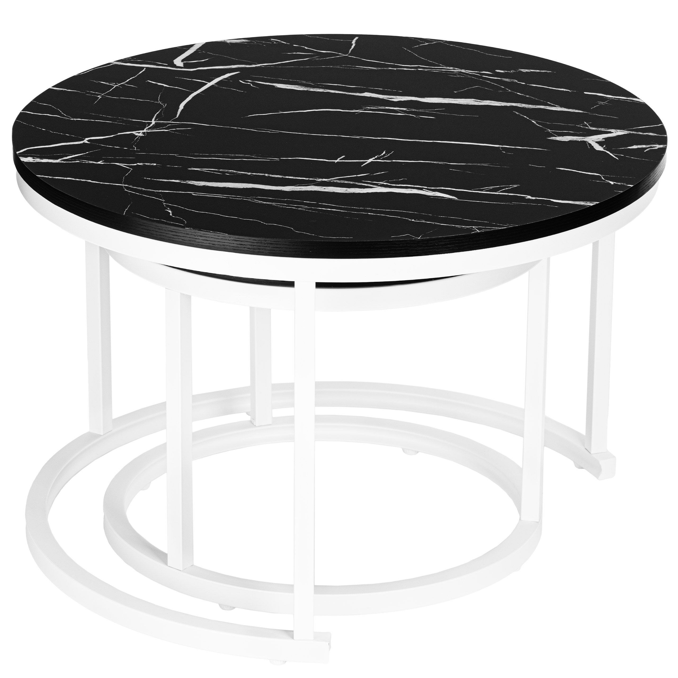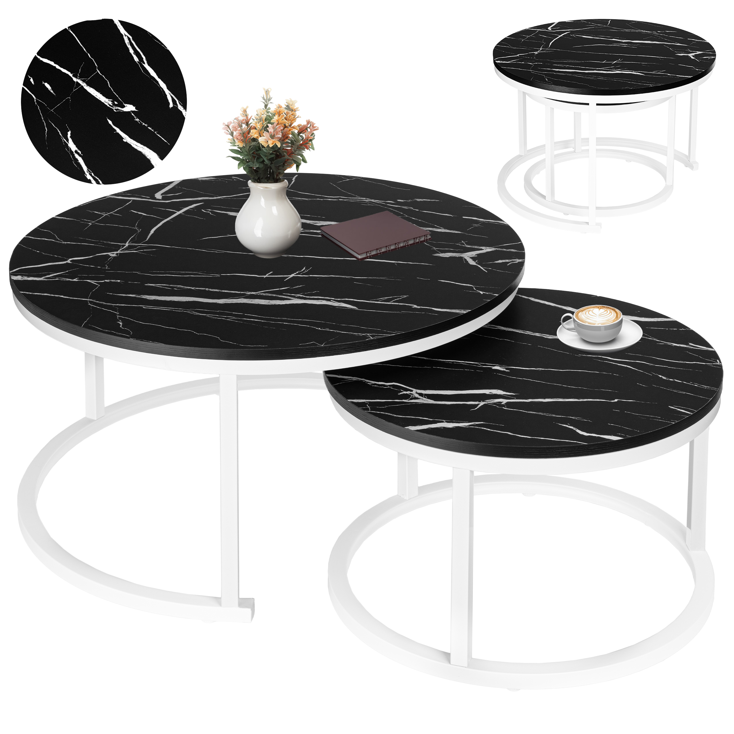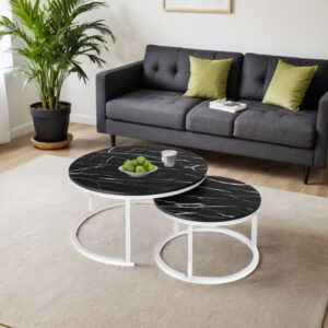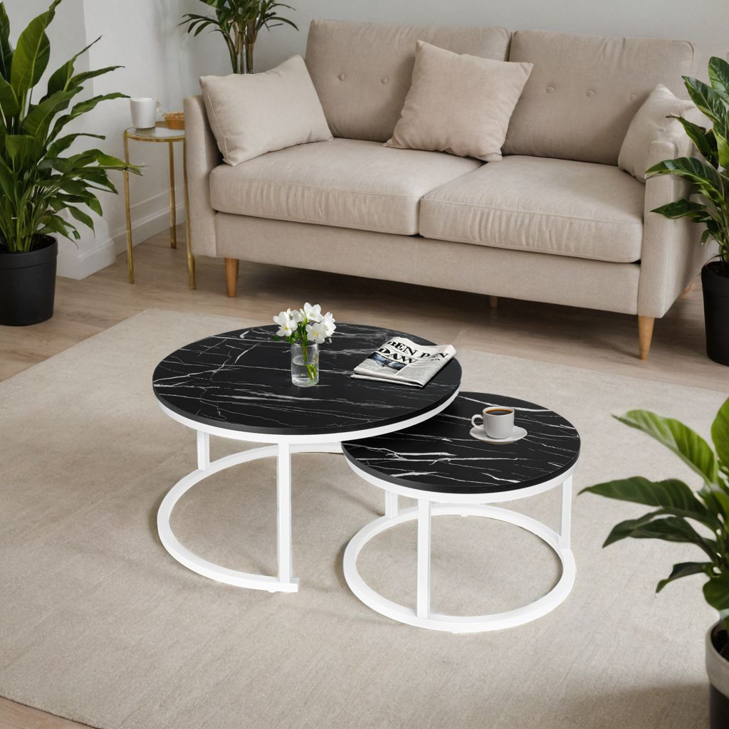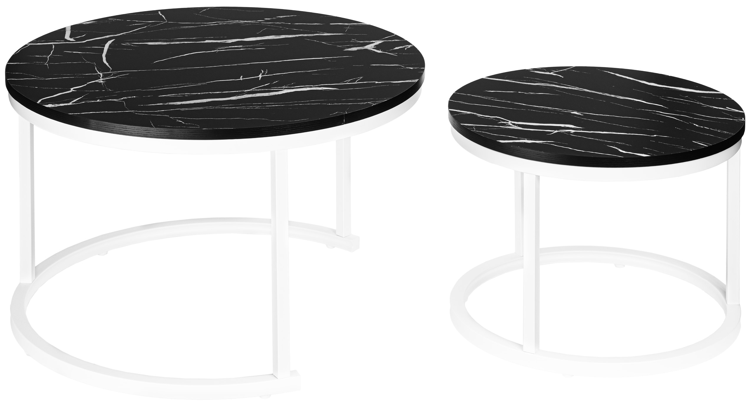 Zestaw dwóch stolików loft Biały Galen Czarny Marmur