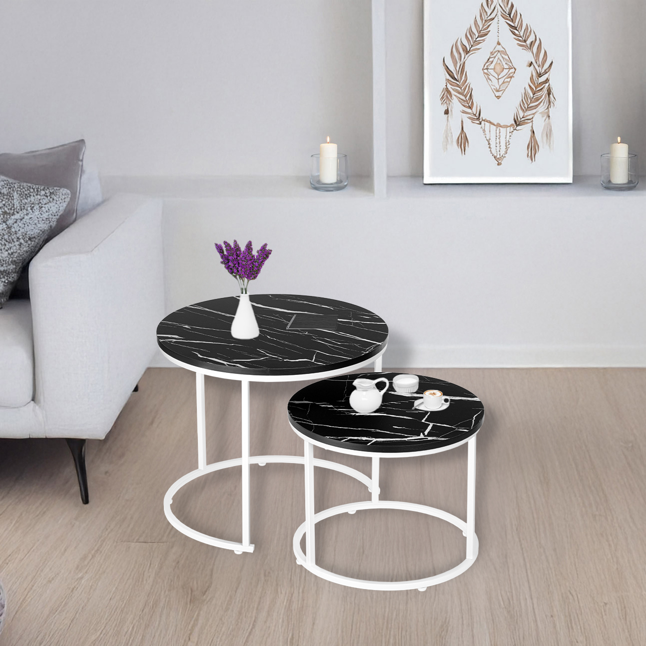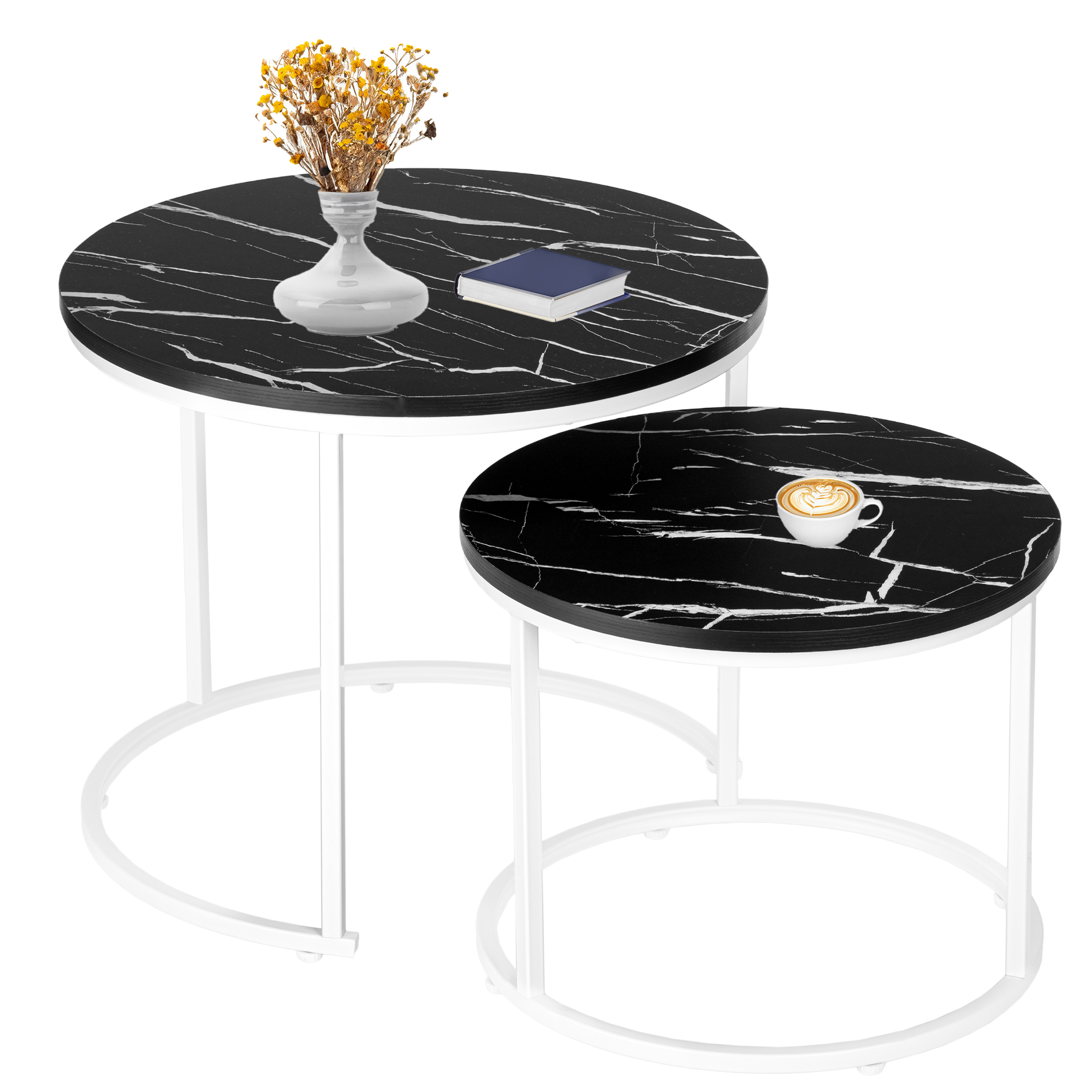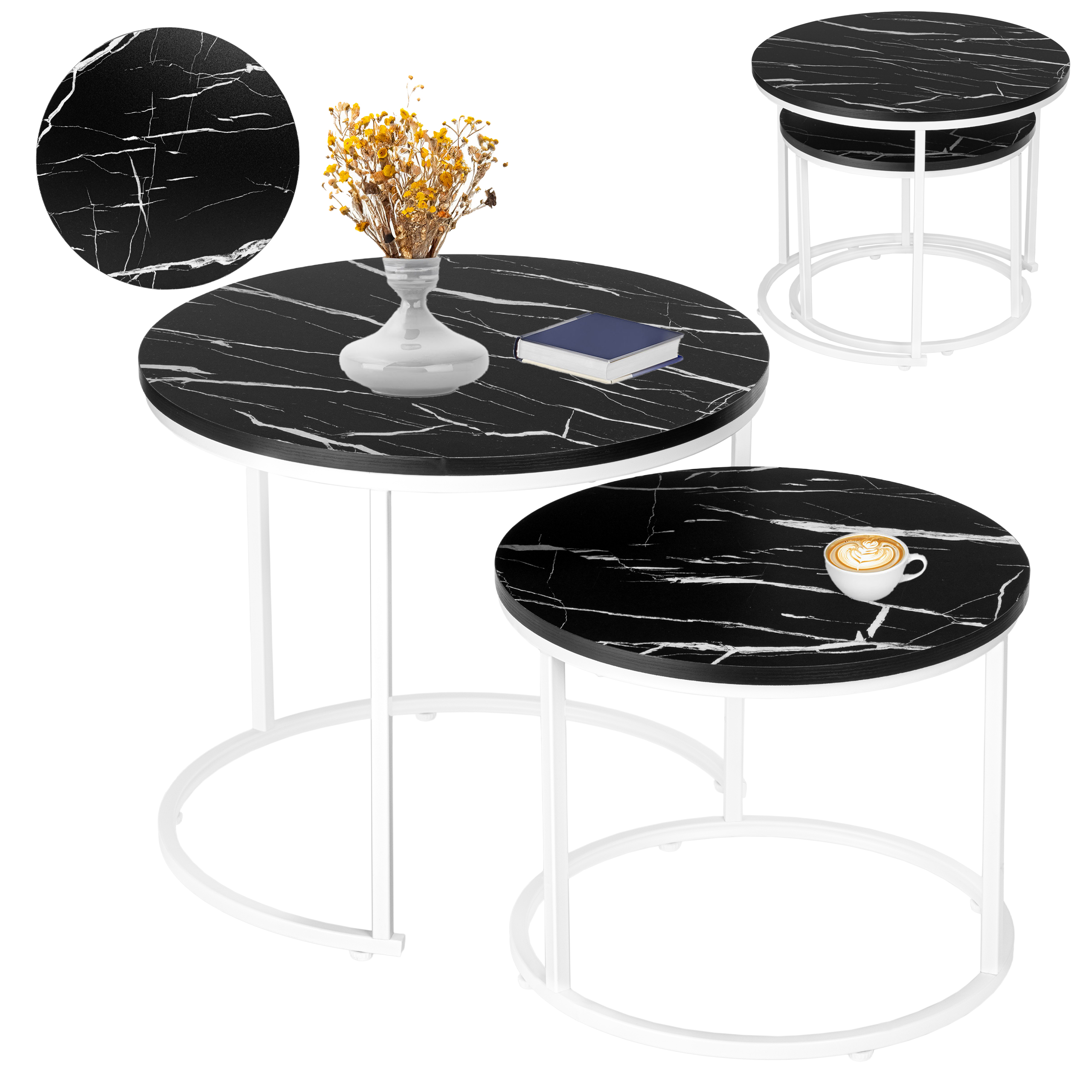 Zestaw dwóch stolików Biały Galen Small Czarny Marmur