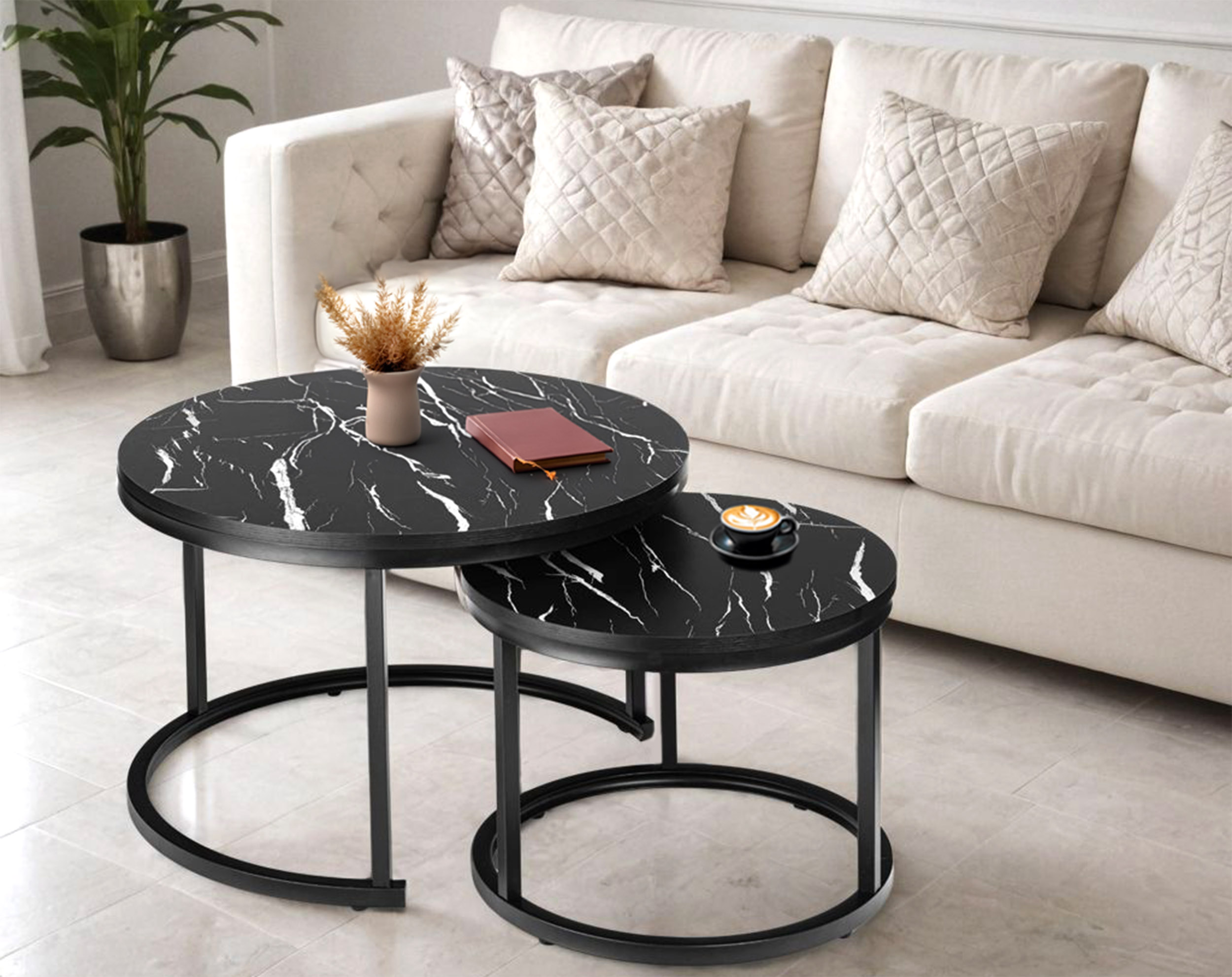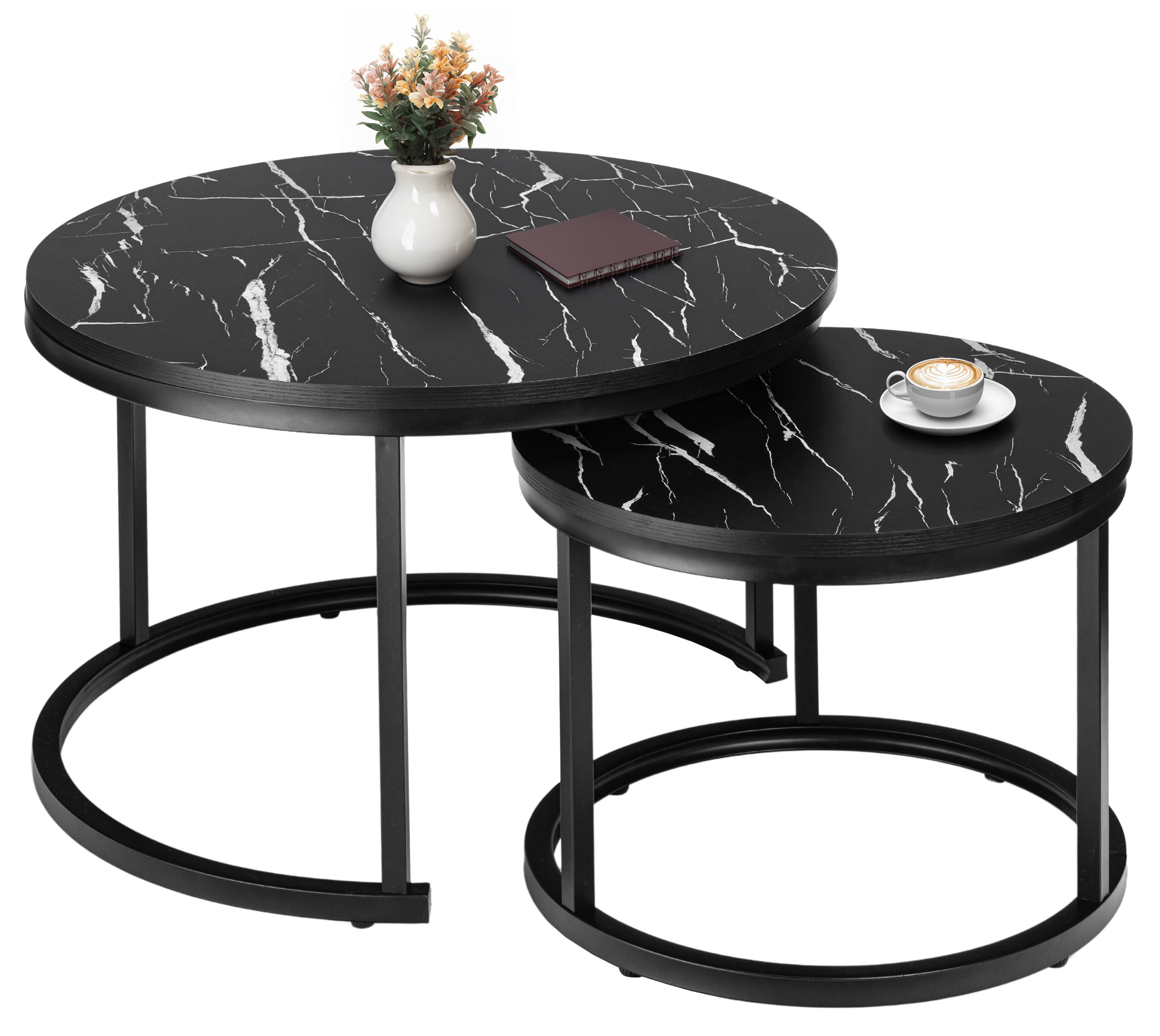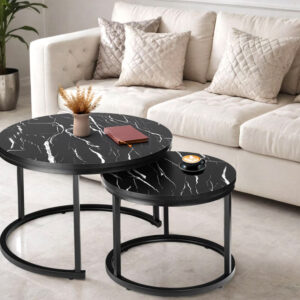 Zestaw dwóch stolików loft Galen Czarny Marmur
