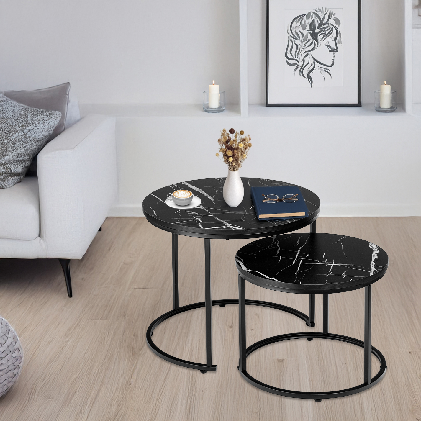 Zestaw dwóch stolików loft Galen Small Czarny Marmur