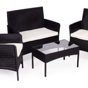 Zestaw mebli ogrodowych stół ławka fotele czarny MultiGarden